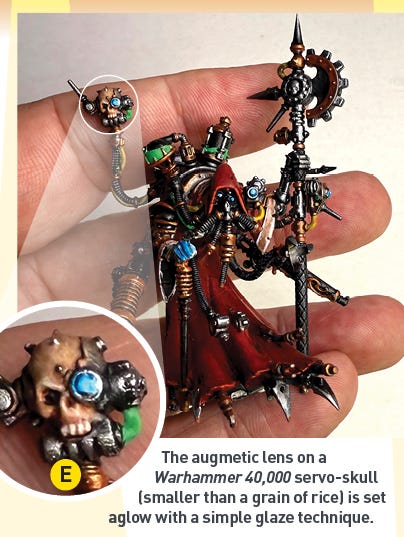 Quick lens and canopy effects — Painting a lens or glass canopy white and then glazing it with a colored glaze or art ink of a suitable color (blue, yellow, red, green, etc.) effortlessly creates a pretty convincing glowing lens effect.