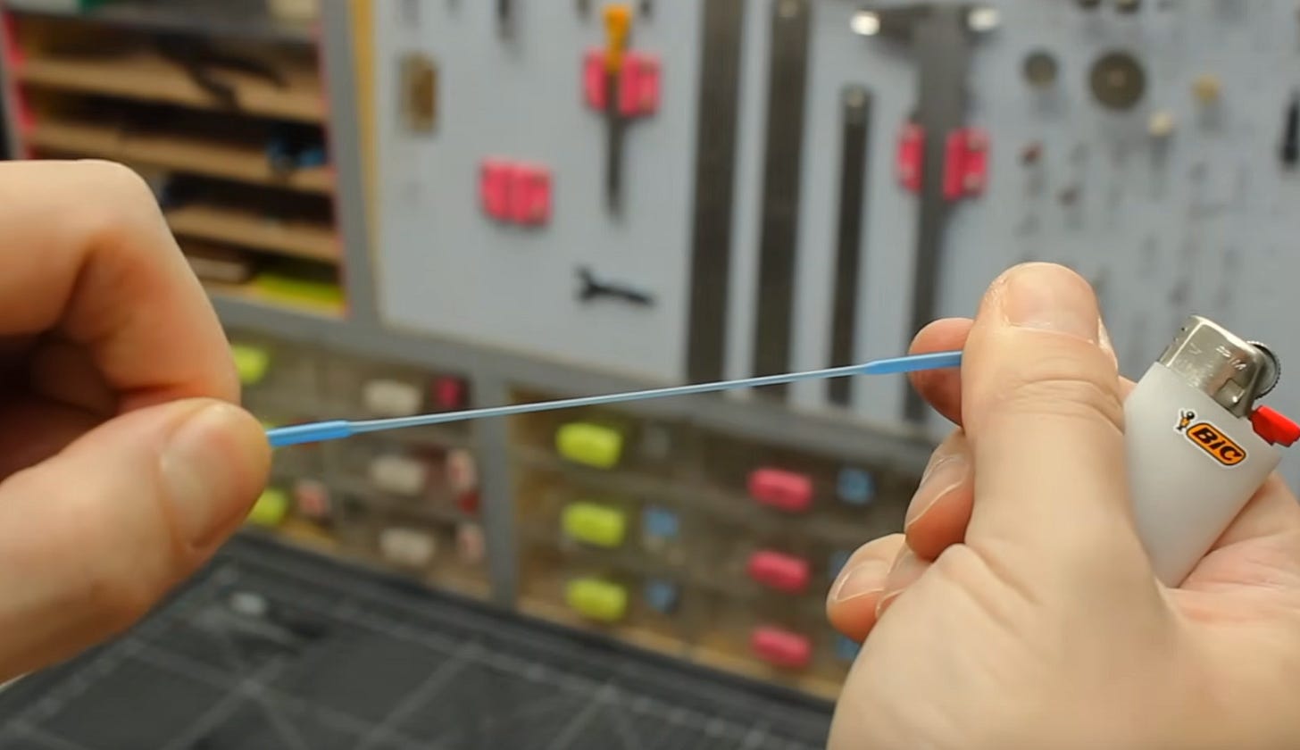 In more hobby news, this video offers a number of really great tips and tricks for using CA glue in model-making (and beyond). The real aha tip for me is the idea of making your own precision super glue applicators by stretching the barrels of plastic cotton swabs (there’s that beauty aisle again). Plastic stretching is a modeling skill unto itself. I can’t wait to try this out.