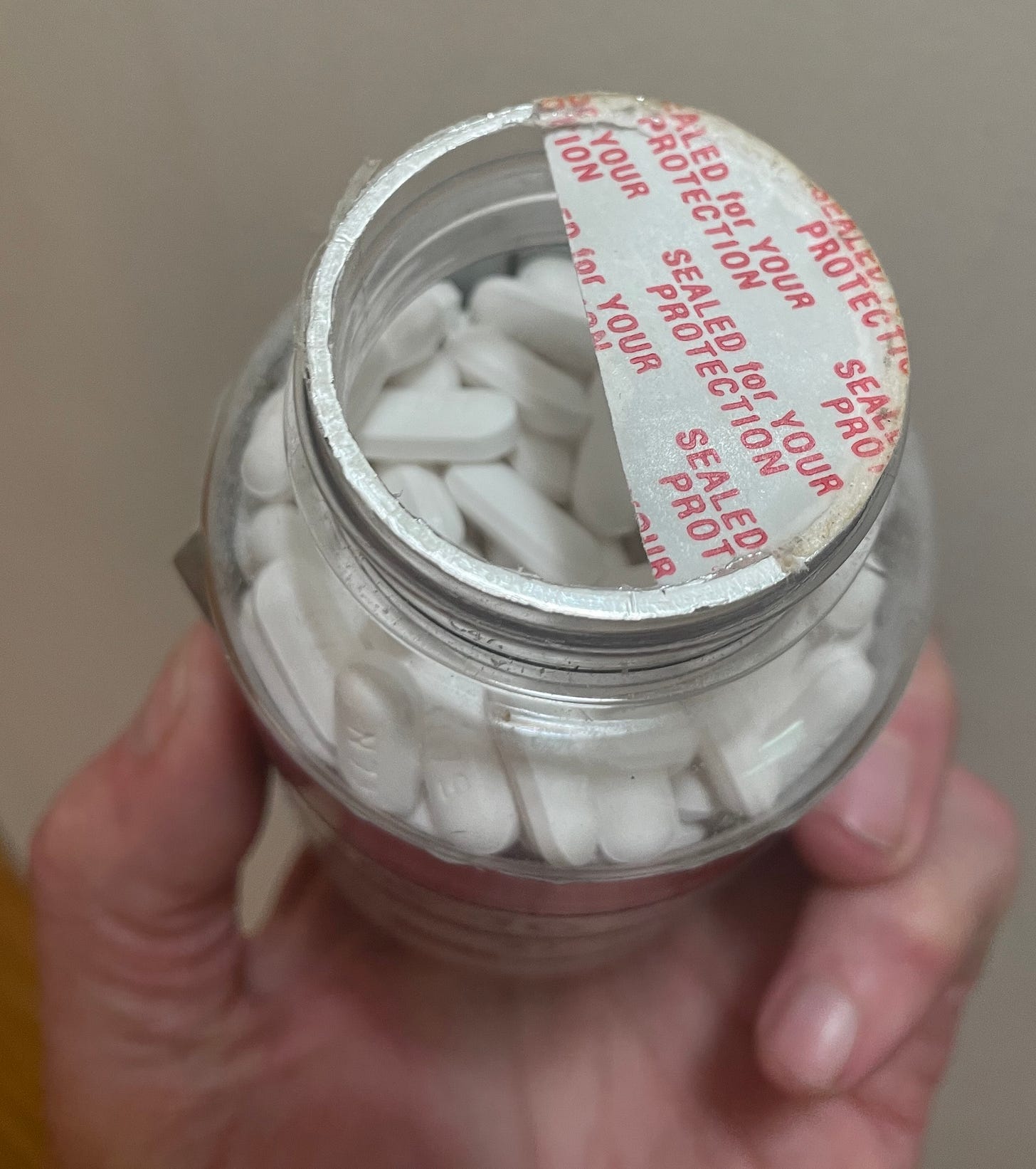 Sadly, this doesn't work on typical amber prescription bottles, but works a treat for OTC meds like Tylenol and other granular things with the "safety sealed for your protection" sheets stuck on top. Use a utility/X-Acto knife to remove half or less of that sheet, and voila, you limit how many pills get dumped out at a go. I find this handy in general and suspect it'd be especially helpful for people with certain mobility limitations or difficulties such as tremor. I know it helped me when I was recovering from a stroke.
